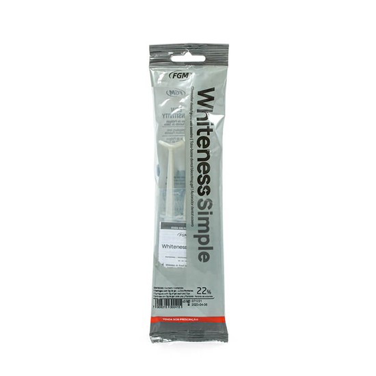 O Clareador Whiteness Simple FGM é um gel clareador à base de peróxido de carbamida e conta com ativos dessensibilizantes (fluoreto de sódio e íons de potássio) e destina-se ao clareamento feito na residência do paciente (também conhecido como clareador caseiro).